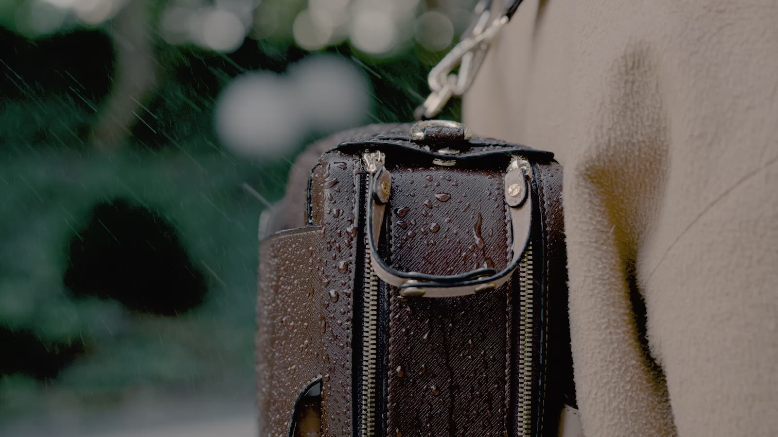 The Noir model is made from a custom made water-repellant fabric and it is complemented by Black Saffiano leather accents, making it a lightest version of the One Collection.