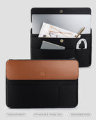 The interior is tailored to house the Air Laptop Case from our Grand & Air collection, while the elegant handles are engineered to welcome the MiMi External Pocket — seamlessly, effortlessly. Whether you're navigating city streets or boarding a last-minute flight, the optional Compression Cube offers expanded space and fast access, inside or out.